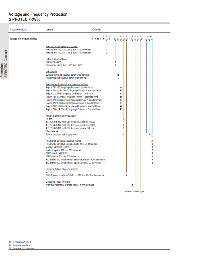 Компания Siemens SIPROTEC компактный 7RW80 является мониторинг численных устройство с множественной функцией реле, подключенных трансформаторов напряжения, систем передачи и электрических машин. Данное устройство имеет возможность ощущать любые изменения разрешенного напряжения, слишком много возбуждения или частоты, указанное устройство будет реагировать в соответствии с набором ценностей он запрограммирован